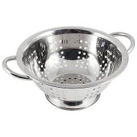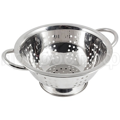 Дуршлаг идеально подходит для процеживания, ополаскивания и стекания макарон, овощей, фруктов. Снабжен двумя ручками, а также круглой подставкой, что делает удобным его использование.